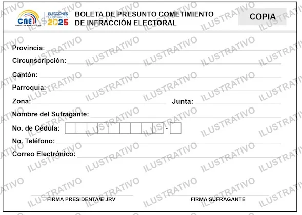 Si alguien incumple esta disposición, recibirá una boleta de sanción, que luego pasará a la Delegación Provincial Electoral, para el trámite respectivo en el Tribunal Contencioso Electoral, por una posible infracción.